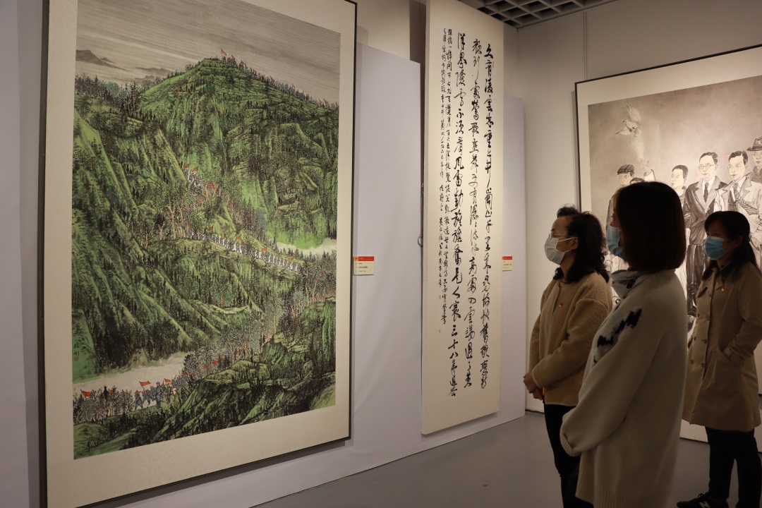 “百年征程——江苏省庆祝中国共产党成立100周年美术书法精品展”由中共江苏省委宣传部、江苏省文化、旅游厅及南京大学主办,南京大学是本次高校巡展的第一站。该展展陈了近200幅作品,作品创作者既有各个时期的名家,也有近年来的优秀中青年艺术家。该展展品内容丰富、门类多样,对于皇冠体育 的师生党员来说,是难得的艺术盛宴,也是珍贵的党史学习机会。
